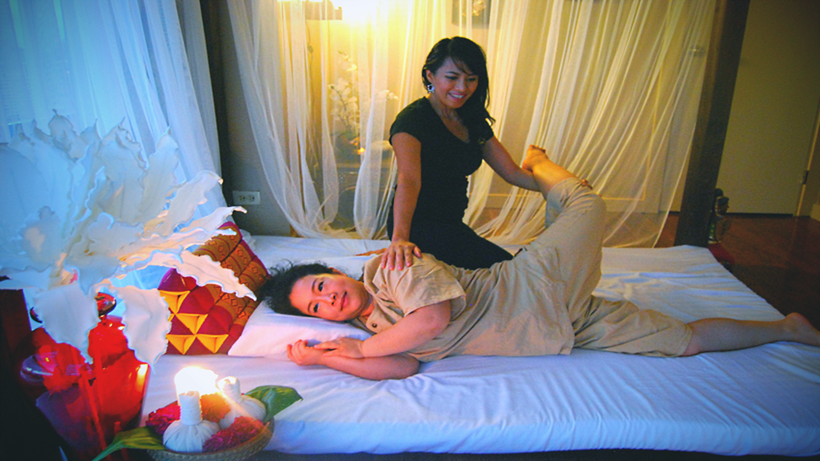 This Signature Massage Features Thai yogic Stretching and pressure point manipulation. The treatment is enchanced by a energizing deep-pressure massage leaving you wanting more.
